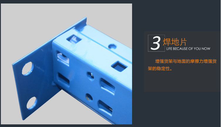 2、立柱由熱軋板折出多個角度而成,故貨架的承重力大。