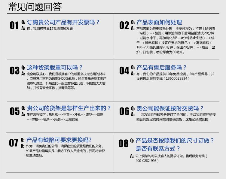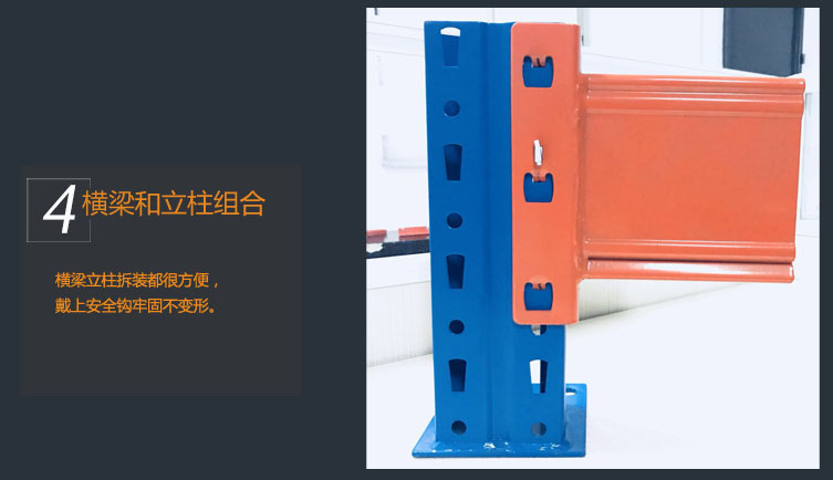 4、立柱設有每75mm調節孔距,可根據貨物高低任意調節。
